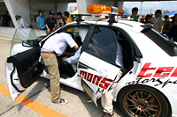 なかなかのスピードで走っているインプレッサに、あっという間に迫り、余裕さえ見せ付けるEVO6コンセプトカー。搭載しているMX390Bのポテンシャルを見ている人に十分に印象付けていました。