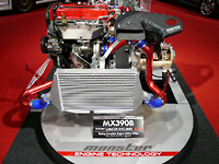 2007年のオートサロンブースを飾ったモンスターエンジンテクノロジーの最新コンプリートエンジン「MX390B」。モンスターの“ノウハウ”と“コダワリ”が凝縮されて2,200ccまで排気量アップされた最強エンジンユニットです。