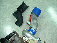 エアクリーナBOXとタービンを繋ぐパイプの事を「サクションパイプ」と言います。ランサーEVO9のサクションパイプは、取回しスペースが非常に狭い為、成型自由度の高いゴムホースを用いています。