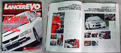 ランサーEVOユーザー&ファンのお楽しみ雑誌「ランサーEVOマガジン」最新号Vol.32に、ランサーEVO6GSR+4G63MIVEC“MX390B”コンセプトカー体感試乗会の様子が紹介されました!