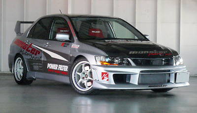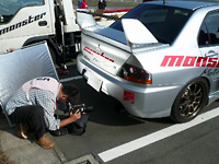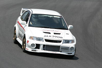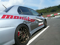この「ランサーEVO6GSR+4G63MIVEC“MX390B”コンセプトカー」の完成披露と特別試乗会を、去る6月17日に筑波サーキットで開催された「MONSTER Meeting」において、筑波サーキット・コース2000を舞台に行いました。