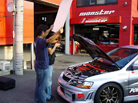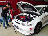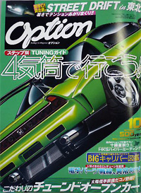 今ストリートチューニングで絶大な人気を誇る、2000ccを中心とする4気筒エンジン車達。チューニング雑誌の中心的バイブル雑誌「OPTION」で、そのクルマのスペシャリストがお勧めするストリートチューニングを、初級・中級・上級の3段階に分けて提案する企画が掲載される事になり、4G63エンジン(ランサーEVO)の担当を、モンスターで行う事になりました。