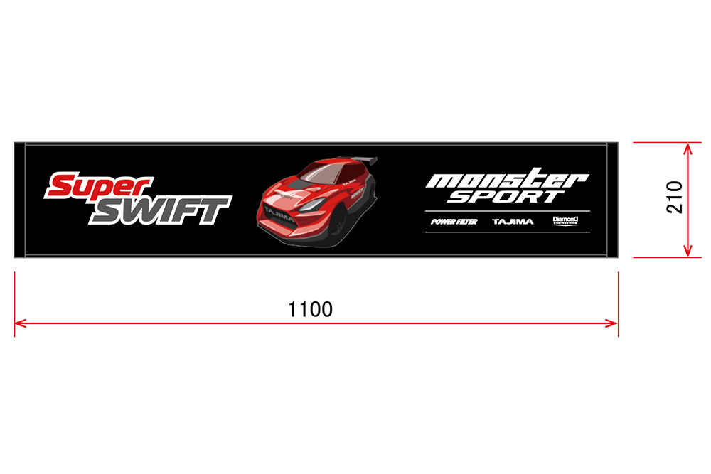 MONSTER SPORTがスイフトスポーツファイナルエディションの登場を受けて提示する究極のスイフトスポーツ『スーパースイフト 2026』。 そのスーパースイフトを実車さながらの迫力と躍動感あるイラストで再現したマフラータオルです。