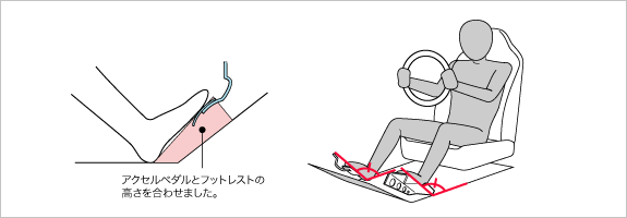 フットレスト高を運転時のアクセルペダルと合わせることで、人車の一体感を増しました。
