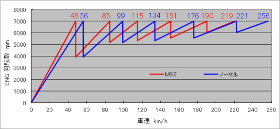 ローギヤード化することにより、エンジン高回転域を有効に使えることになり加速性能が向上します。